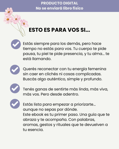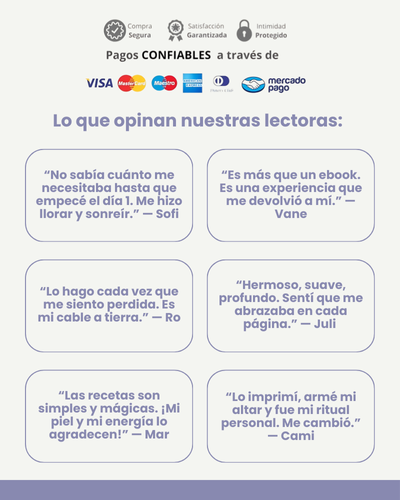 No pasa nada. El ebook es tuyo para siempre. Podés repetir, pausar o volver a empezar las veces que quieras. La transformación no tiene fecha de vencimiento.
